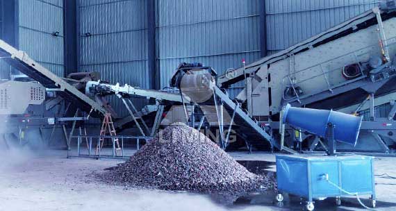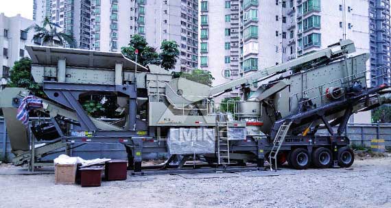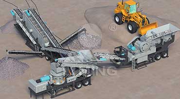 移动生产线通常以外接电力电源为动力来源,原料由GF系列振动给料机均匀地送到C6X系列颚式破碎机或者CI5X系列反击式破碎机进行粗碎作业,粗碎后的物料由皮带输送机送入到圆锥破碎机或者反击式破碎机进行进一步破碎,细碎后的物料被输送到S5X系列振动筛进行筛分,达到成品粒度要求的物料被由成品输送带输出即为成品;未达到成品粒度要求的物料从振动筛返回制砂机或者圆锥破重新加工,形成闭路多次循环。成品粒度可按用户的需求进行组合和分级。